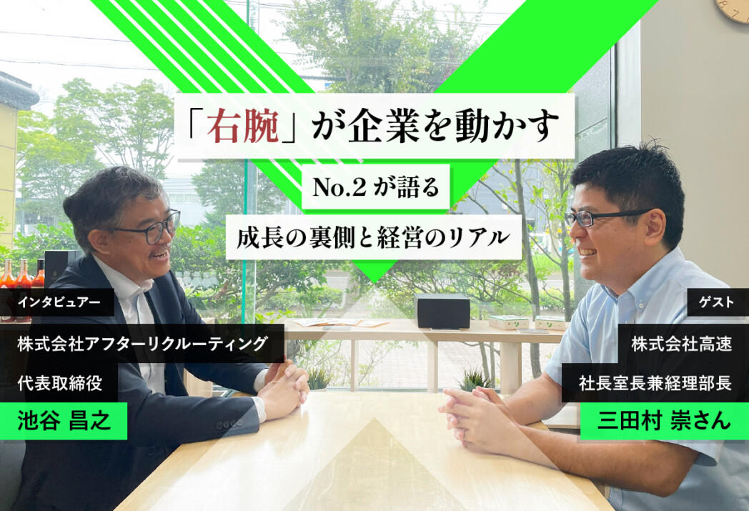 第1回では、株式会社アフターリクルーティング代表・池谷昌之さんに「No.2理論」やその役割の本質について伺いました。(記事はこちら)