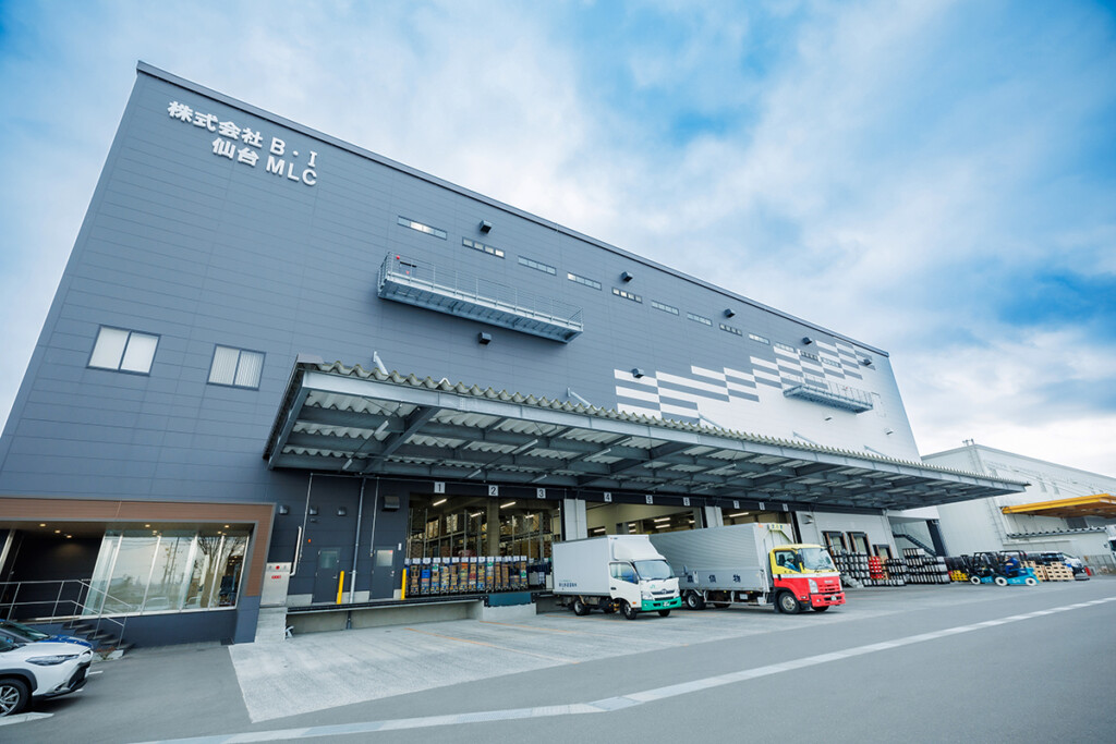 当初から得意としてきた食料品は、祖業である運送にしてもその後取り組んできた倉庫業務にしても、徹底した日付管理と丁寧な荷扱いが求められます。私たちはその基本を愚直に守り続け、荷主様からの信頼を積み重ねてきました。その結果、荷主様から弊社の仕事ぶりを認めていただき、新たな引き合いが増加して、出荷から配送までを担う総合一貫物流企業としての「B・I品質」をつくりあげてきました。おかげさまで14期連続増収となり、直近の年間売上は46億円を達成しました。2023年に完成した本社・「仙台MLC(メインロジスティクスセンター)」を中心に、東北各県と新潟県、茨城県まで21営業拠点の広域物流ネットワークを築き、常温からチルド、冷凍と各温度帯のトラック200台を毎日運行しています。